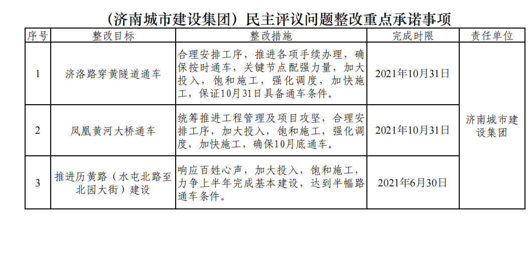 (济南城市OG真人官方)民主评议问题整改重点承诺事项