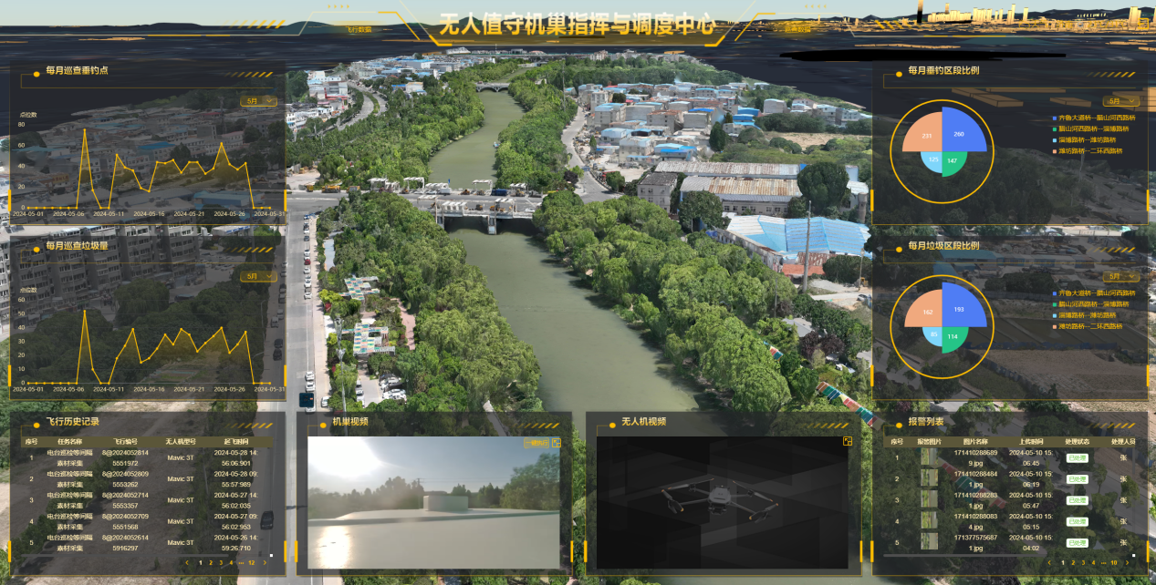 该机巢布置于湖心岛,可对华山景区水面、绿化共计6.25平方公里的区域进行日常巡检。该机巢具备无人机定时自动收放、飞行、充电功能,彻底实现无人化值守,支持对无人机及载荷远程控制。同时,自主巡检系统顺利获得AI算法,对无人机获取的低空原始数据定位分析,如发现问题,经管理专员核查后,可顺利获得业务处理平台app派发至运营人员销项处理。