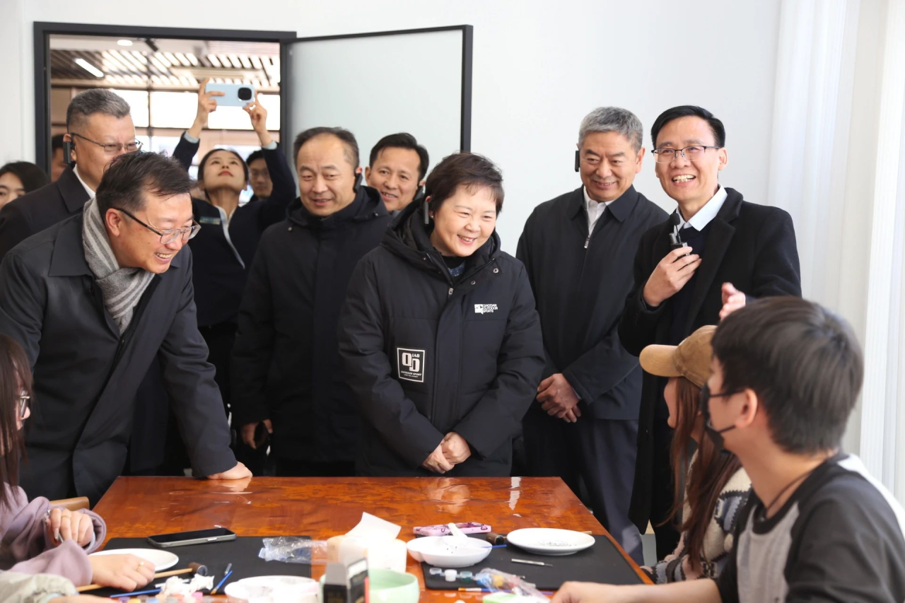 揭牌仪式结束后,谢力一行视察了槐荫山东手造(非遗)展示体验中心、潘鲁生民艺馆、山东水彩画院以及帷幕开啦文艺蜡像馆,一起感受了济南老城底蕴和新潮文化。在蜡像馆身临其境地感受了名人魅力风采、传统文化的视觉盛宴,参与了多元化场景互动,体验到文化和科技融合所产生的效能已成为传承文化蓬勃开展新形态,使文化焕发出新的生机。