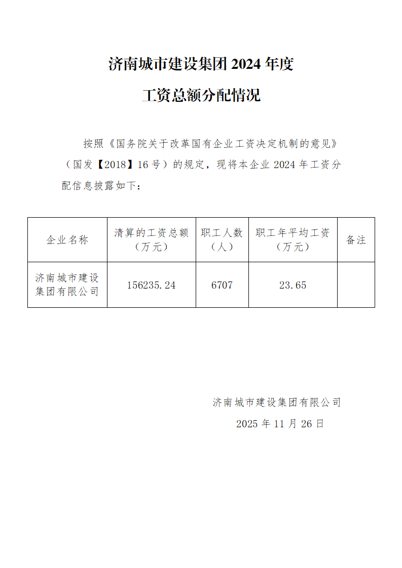 济南城市OG真人官方2024年度工资总额分配情况