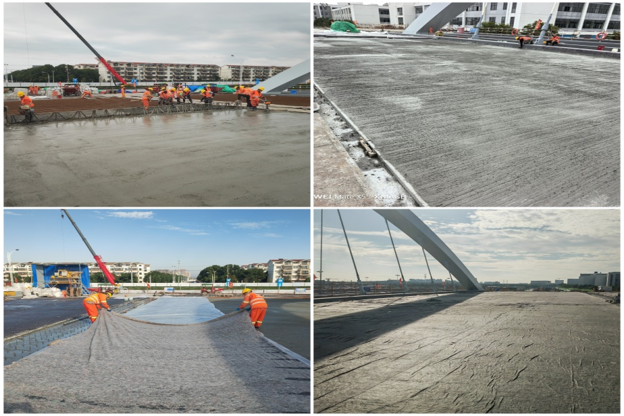 苏州长阳街北延项目新建一座外倾式钢结构系杆拱桥,其桥面铺装施工采用USFRC低收缩高强韧性抗渗混凝土。USFRC低收缩高强韧性抗渗混凝土用于施工有诸多优势,其低收缩性可提升混凝土的耐久性和使用寿命,高强度能增强结构的安全性与稳定性,高韧性让混凝土在遭受冲击或振动时不易破裂,抗渗性能表明它可抵抗不小于0.8MPa的水压力且不出现渗透问题。项目部将继续深入贯彻公司“效益提升年”的工作安排,持续探索和创新施工工艺,扎实保障施工质量,持续提升项目部施工质量与创新水平。