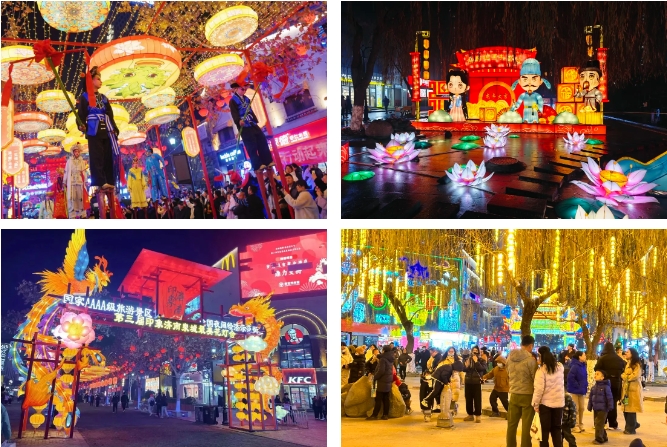 2025年元旦,印象济南·泉世界推出“第四届印象济南‘泉城最美花灯会’”,打造“鲤鱼跃龙门”巨型灯组,为游客带来了一场视觉盛宴,活动将不断持续到3月1日(农历二月二),春节期间街区将召开民俗扮玩、非遗市集、花果糖茶年货大集展销活动,景区内百店同庆,推出特色新品、美食优惠、购物抽奖等多样福利,让广大市民游客在元旦、春节、元宵节期间能够尽情游玩赏灯、打卡互动、阖家团圆、朋友聚会,共同度过欢乐祥和的节日时光。