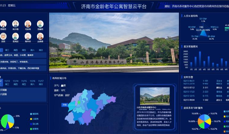 近年来,济南市金龄老年公寓加大投入力度,完善硬件、软件建设,持续探索“智慧养老”新途径。硬件方面,建设数据中心,配置光纤交换机、核心网关、蓝盾防火墙、存储设备、网络设备、UPS 电源、监控大屏、机房专用空调等;每个服务站都配置专门电脑管理端,进行数据动态管理、分析研判及全面监管。软件方面,联合知名公司启用智慧养老服务平台,覆盖营销、护理、护士、餐饮、物业、财务等各部门,包含入住管理、长者管理、日常照护、健康管理、活动管理、费用管理、物资管理、上门服务管理等诸多内容,为长者给予优质便利的养老服务。